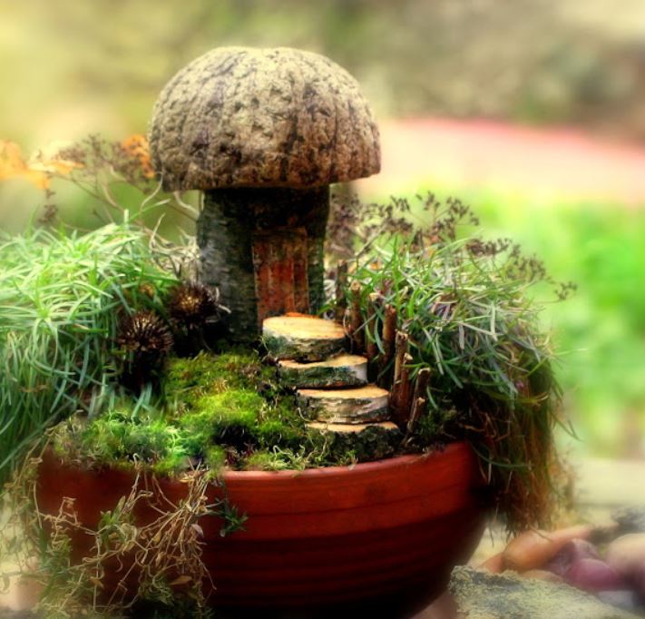 little lilliputian landscapes? We seem to revisit this floral amusement from time to time. Is it that we feel a hankering for a primal slice of something old and ancient, if not as threatening as Jurassic Park- at least filled with fairies and magic?